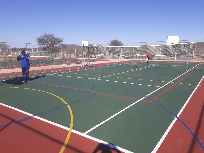 Professionally painted lines and durable fencing ensure safety and proper play.